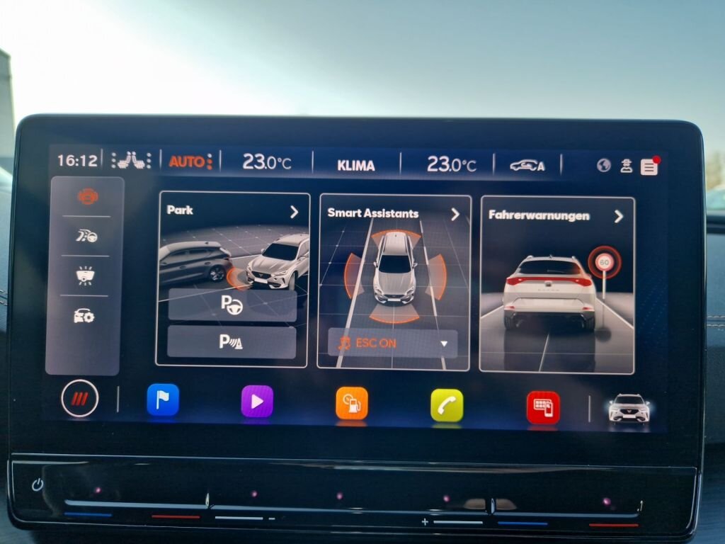 - Navigation: Navigationssystem Navigationssystem vorbereitet für die Aktivierung des Dienstepakets CUPRA CONNECT Online-Infotainment - Navigationssystem mit 12" Display - 3D Navigation - Sprachsteuerung - MAPCARE mit Karte für Europa integriert - Vorausschauende Geschwindigkeitsregelung für ACC